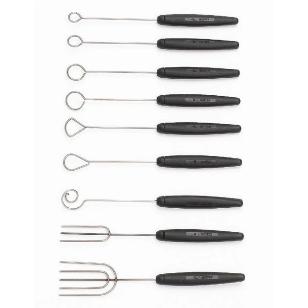 La broche à tremper est utilisé pour tremper des préparations en confiserie ou des fruits dans du chocolat en évitant de laisser des marques. La broche à tremper permet de réaliser un enrobage chocolat parfait et sans trace.