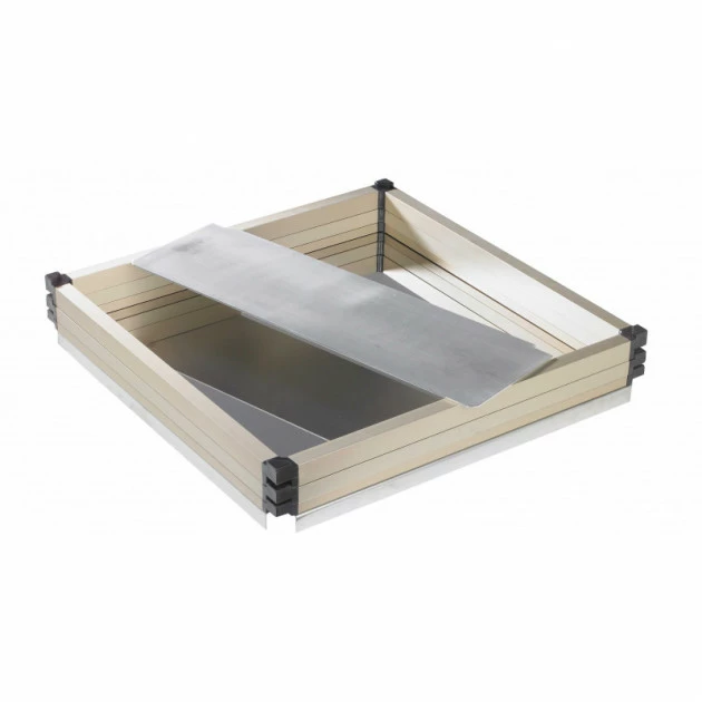 Cadres superposables spĂ©cialement conçus pour les prĂ©parations (ganache, pâte de fruits, pralinĂ©…) pouvant ĂŞtre coupĂ©es Ă la guitare.
