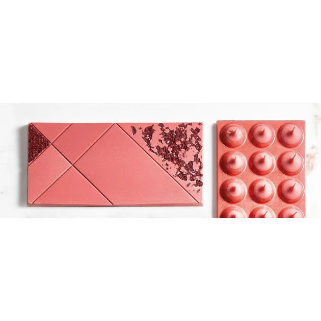 Le Chocolat Ruby est idĂ©al pour le travail en pâtisserie et en chocolaterie : moulage, enrobage, mousse vos recettes habituelles se dĂ©clineront facilement en version Chocolat Ruby. Simples d’utilisation, les pistoles de chocolat rose favorisent la fonte et simplifient le dosage.Â