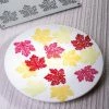 Conseil : Afin d’obtenir des feuilles à l’effet courbé, nous vous conseillons de positionner le moule en silicone sur une surface ronde, de cette façon les décors prendront la forme dans laquelle il sont positionnés. Vous pouvez également laisser prendre les décors suffisamment pour qu’ils soient manipulés sans se briser et ensuite les placer sur une feuille de rhodoïde recourbée pour la fin de la prise.